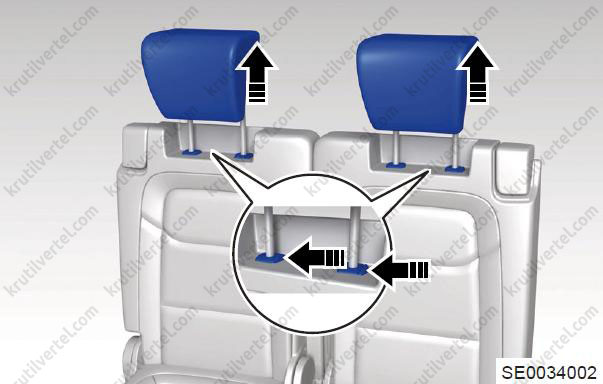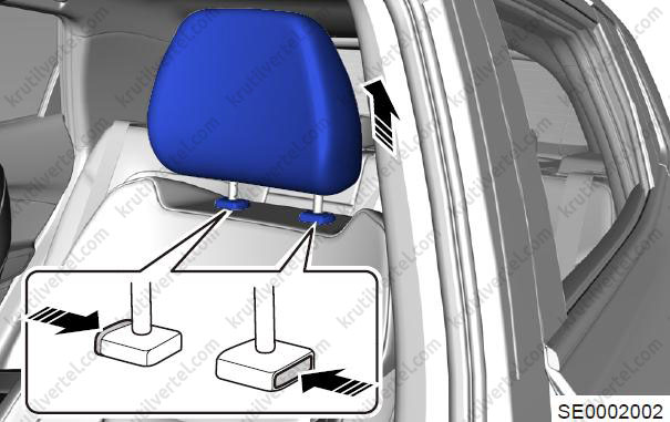 Натисніть кнопку фіксатора на направляючій втулці підголівника сидіння та зніміть підголівник сидіння водія (див. малюнок).