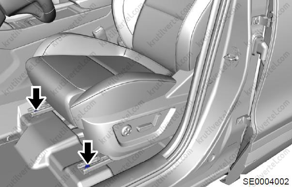 Передні сидіння можуть зрушуватися вперед і назад за допомогою перемикача електроприводу поздовжнього регулювання та регулюватися по висоті за допомогою перемикача регулювання висоти (доступно тільки для сидіння водія). Нахил спинки сидіння регулюється за допомогою перемикача регулювання кута нахилу спинки сидіння.