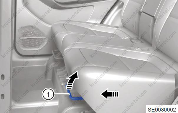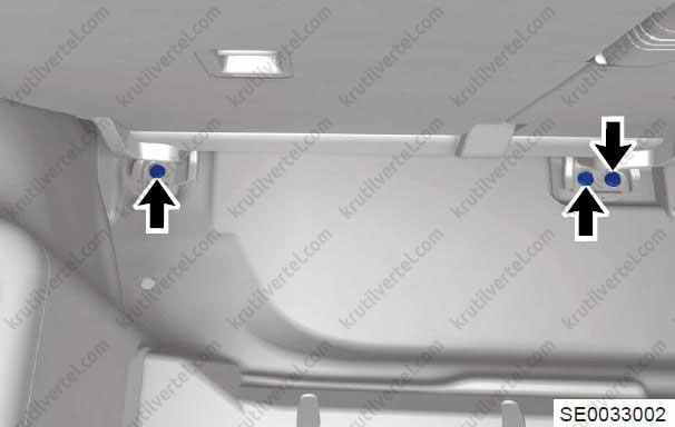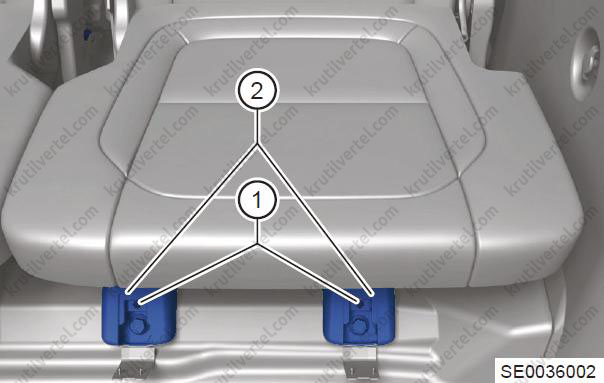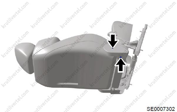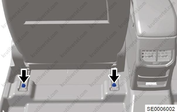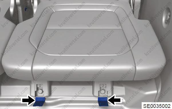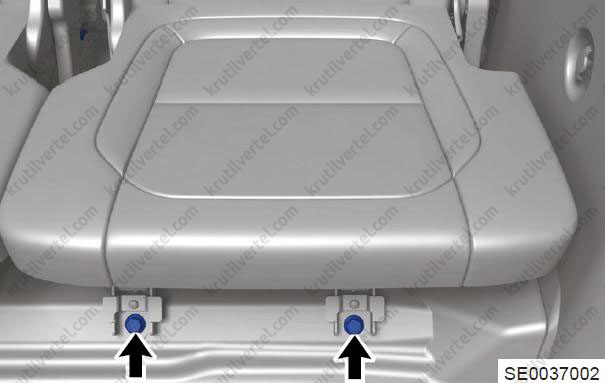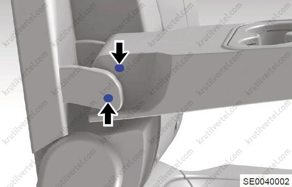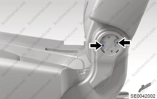 - Поверніть два болта (стрілки) кріплення в передній частині сидіння.