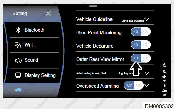 - Клацніть по рядку Outside Rear View Mirror Auto Folding OFF (Вимкнути автоматичне складання зовнішніх дзеркал заднього виду) (стрілка).