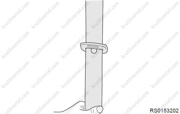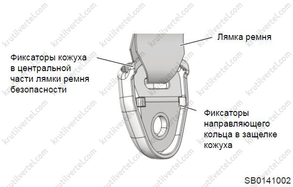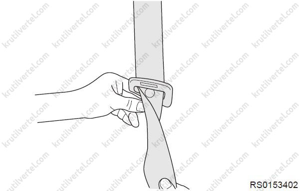 При втягуванні лямки ременя безпеки вона стикається з боковиною сидіння і провертається щодо язичка на 180°. При подальшому використанні витягування язичка (внутрішній зазор більший за товщину лямки ременя) може періодично призводити до розвороту язичка. Поверніть його у вихідне положення згідно з інструкцією (знімати ремінь безпеки не обов'язково). Якщо на лямках ременя немає жодних пошкоджень, заміна не потрібна.