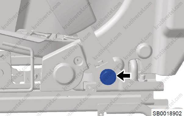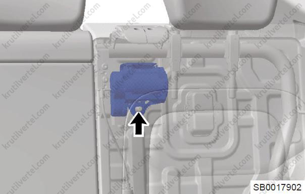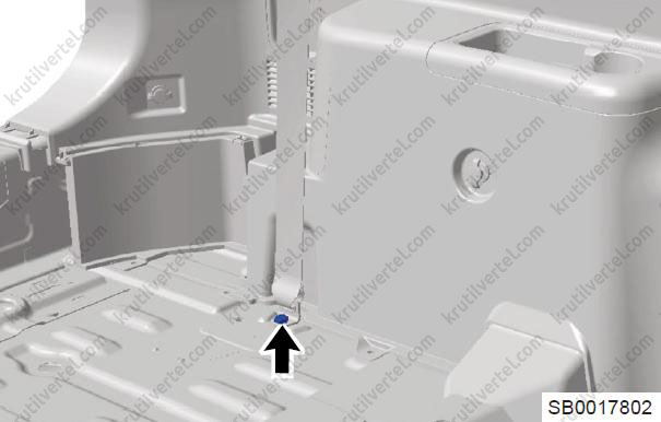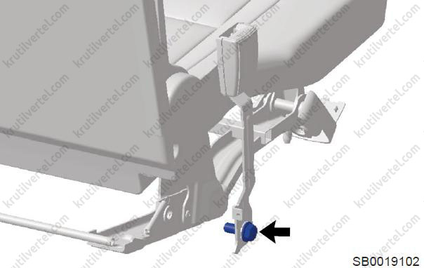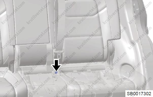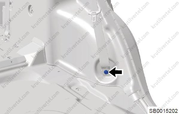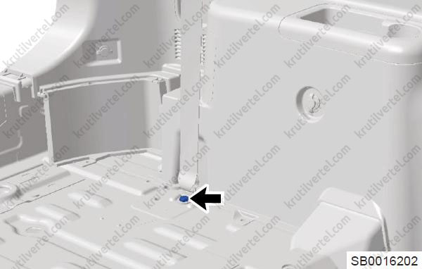 - Відкрутіть нижній болт кріплення ременя безпеки сидіння другого ряду (стрілка).