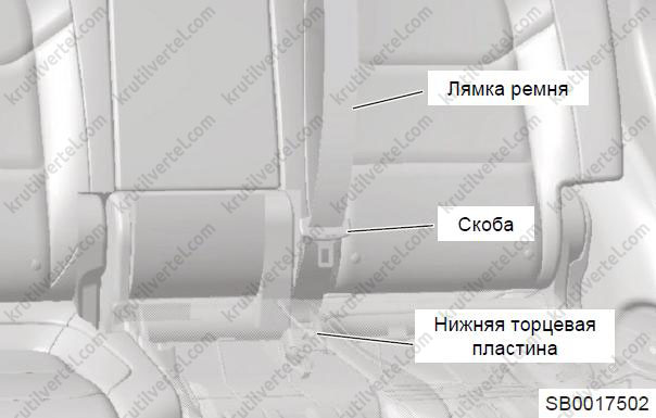 - Витягніть лямку, скобу та нижню торцеву пластину ременя безпеки.