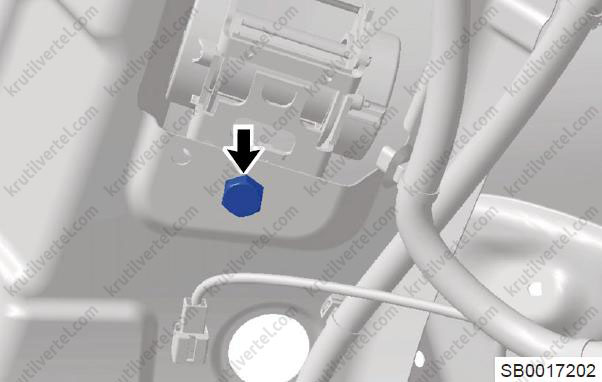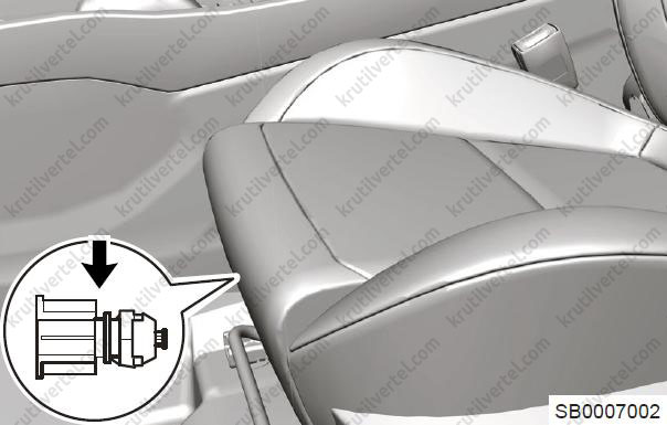 - Вставте роз'єм переднатягувача ременя безпеки салонного джгута проводів у роз'єм газогенератора котушки, що втягує, і натисніть кнопку блокування. Переконайтеся, що роз'єм правильно підключений та зафіксований (версії топового рівня комплектації).