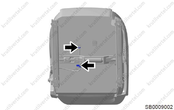 - Від'єднайте затискач джгута проводів замка ременя безпеки (стрілка) від нижньої частини сидіння.