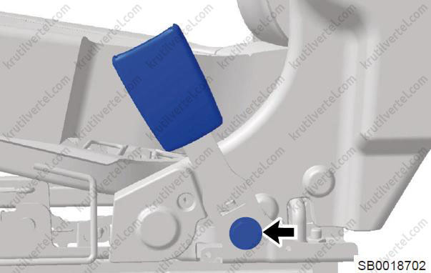 - Зніміть нижню торцеву захисну кришку ременя безпеки сидіння другого ряду (стрілка).