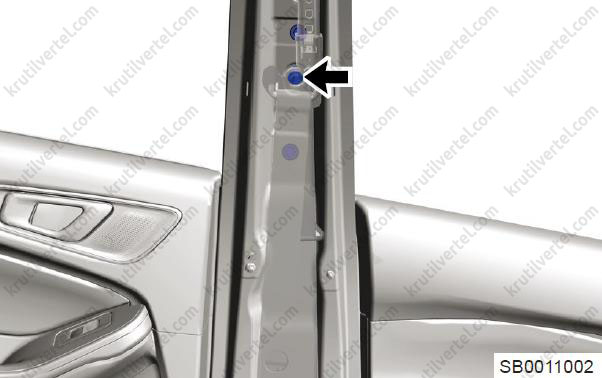 - Зніміть верхнє облицювання середньої лівої стійки кузова.