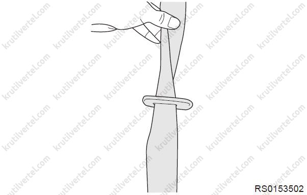 2. Складіть лямку ременя та потягніть її вниз (можливо будь-який напрямок згину), потім переверніть лямку та протягніть її в скобу.