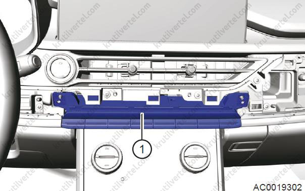 - Використовуючи пластинчастий знімач для панелей інтер'єру, зніміть центральну панель керування у зборі (1).