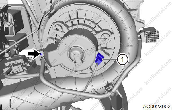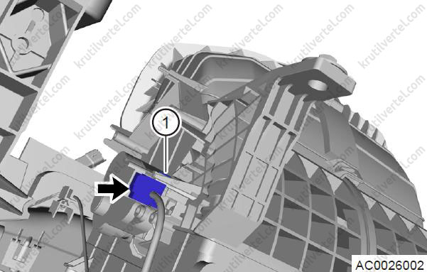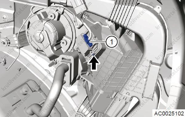 - Від'єднайте роз'єм модуля регулювання швидкості вентилятора (1).