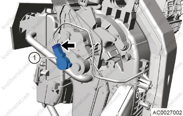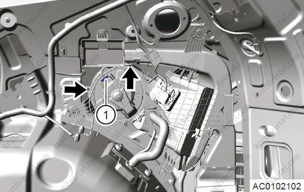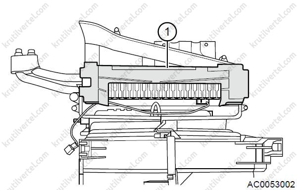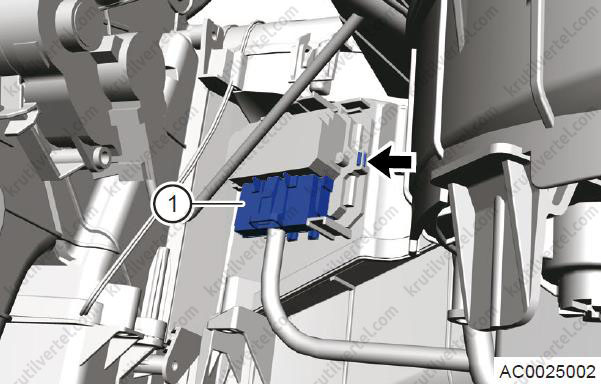 - Від'єднайте роз'єм (1) блоку керування автоматичною системою кондиціювання.