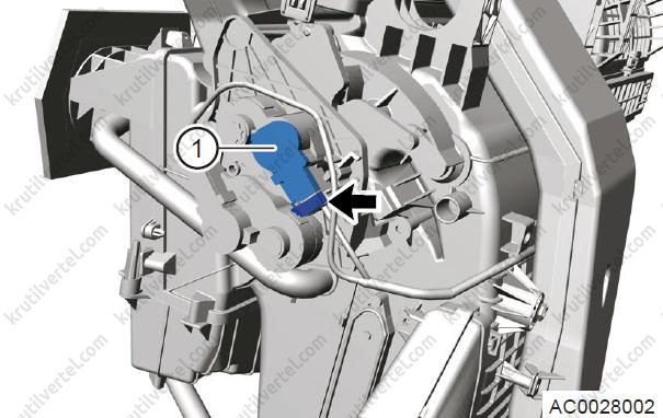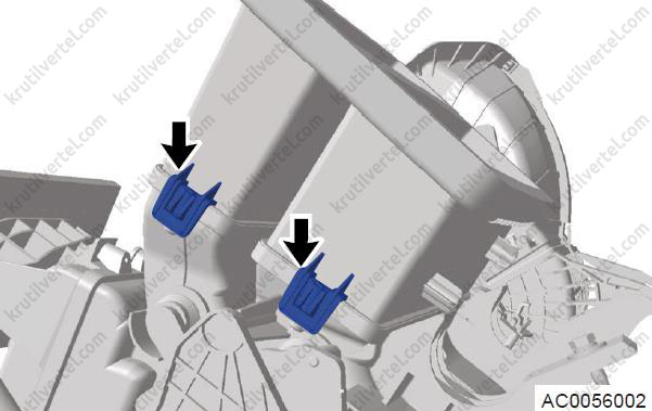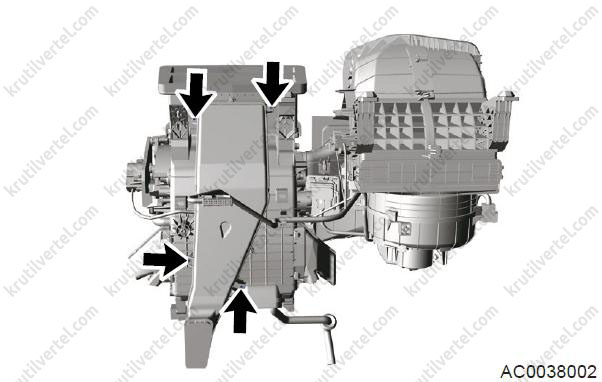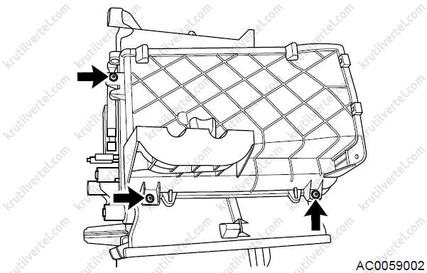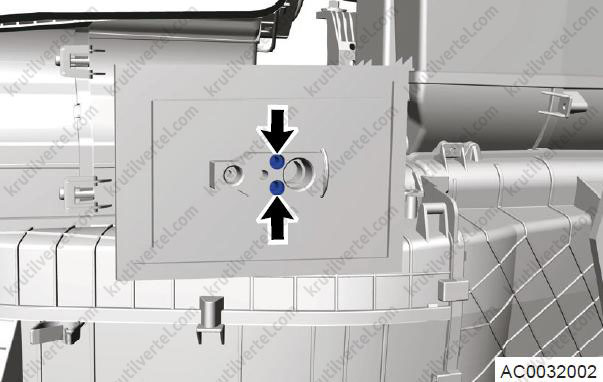 - Перевірте комплект заслінки напряму потоку повітря в обличчя/комплект заслінки обігріву лобового скла на предмет заклинювання, деформації, пошкодження або випадання. Замініть у разі потреби.