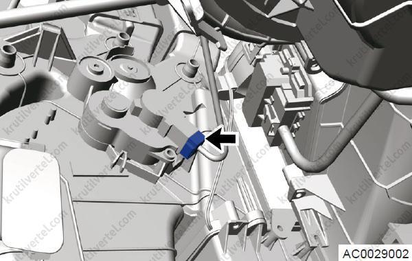 - Від'єднайте роз'єм приводу лівої змішувальної заслінки (стрілка).