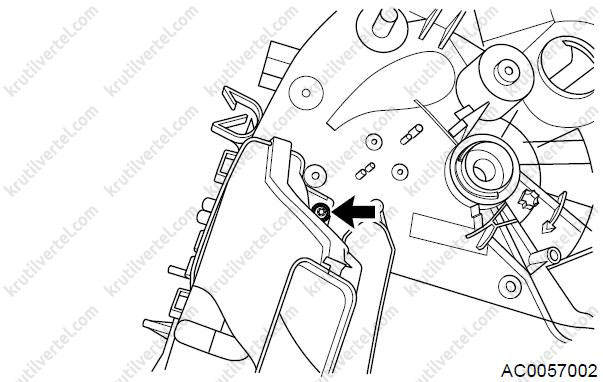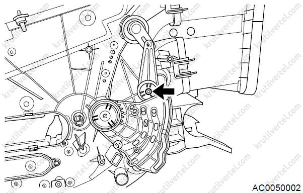 5. Установка проводиться в порядку, зворотному порядку зняття, при цьому враховуйте наступне: при установці нанесіть невелику кількість мастила на контактну поверхню важеля приводу заслінки вибору режиму та самої заслінки вибору режиму, що забезпечить плавну роботу приводу.