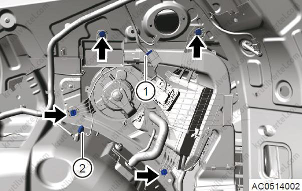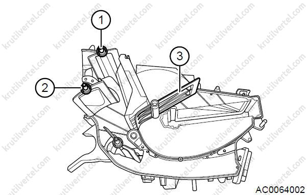 Зняття та встановлення приводу повітряних заслінок внутрішньої/зовнішньої циркуляції