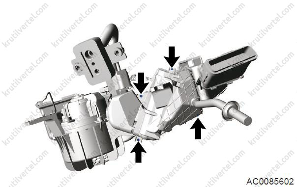 - Перевірте радіатор випарника у зборі на предмет тріщин, пошкоджень та витоку. Якщо виявлено будь-яку проблему, замініть радіатор випарника в зборі.