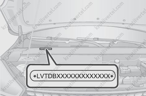 VIN вказаний на капоті, як показано на малюнку.