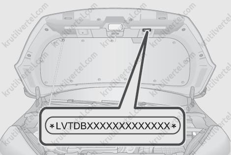 VIN вказаний на двері багажного відділення, як показано на малюнку.