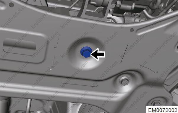 - Поверніть стяжний болт (стрілка) між нижньою частиною корпусу заднього кріплення та підрамником.