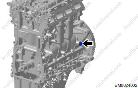 Використовуйте пристрій для вивішування двигуна, щоб вивісити двигун за підйомний вух, коли масляний піддон спирається на домкрат. Не нахиляйте двигун праворуч, щоб спростити зняття правої монтажної подушки двигуна в зборі.