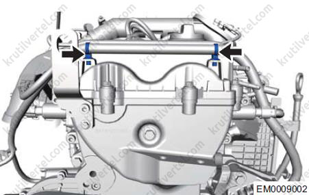 - Роз'єднайте вентиляційний канал картера (стрілка) та кришку головки блоку циліндрів.