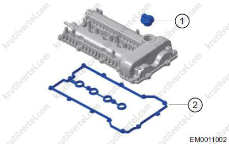 - Зніміть кришку (1) маслоналивної горловини та прокладку (2) кришки головки блоку циліндрів.