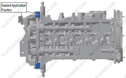 - Нанесіть герметик на Т-подібну область між кришкою механізму газорозподілу та головкою блоку циліндрів.