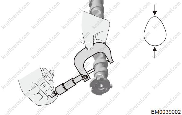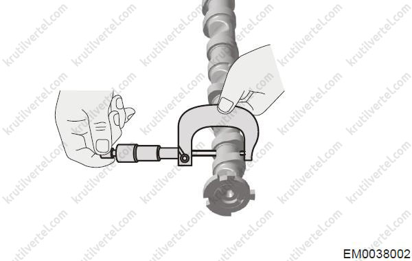 Виміряйте найвищу точку кулачка за допомогою мікрометра. Якщо висота кулачка не в межах вказаного діапазону, замініть розподільний вал впускних/випускних клапанів.