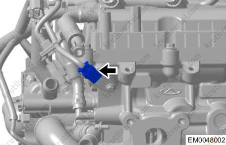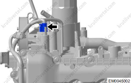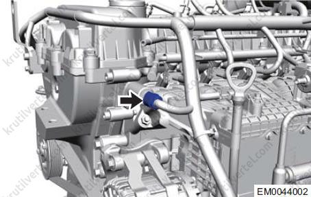 - Від'єднайте роз'єм (стрілку) датчика положення колінчастого валу та зніміть датчик положення колінчастого валу.