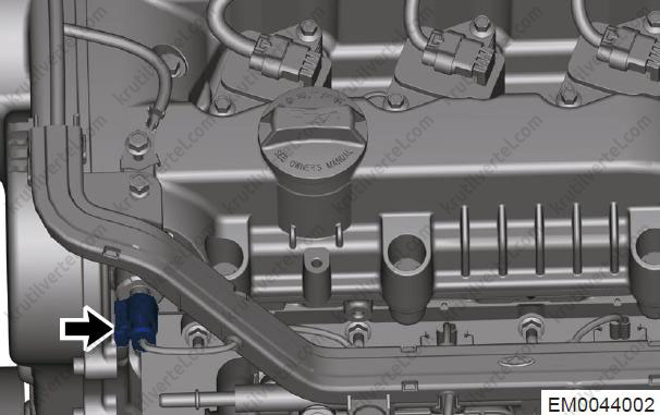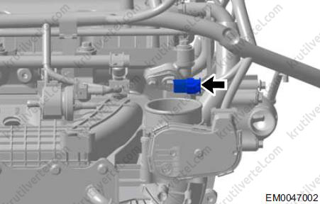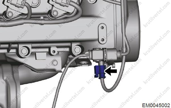 - Від'єднайте роз'єм датчика положення розподільного валу (стрілка).