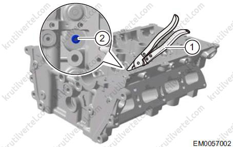 7. Використовуючи знімач сальника клапана (1), зніміть сальник клапана (2).