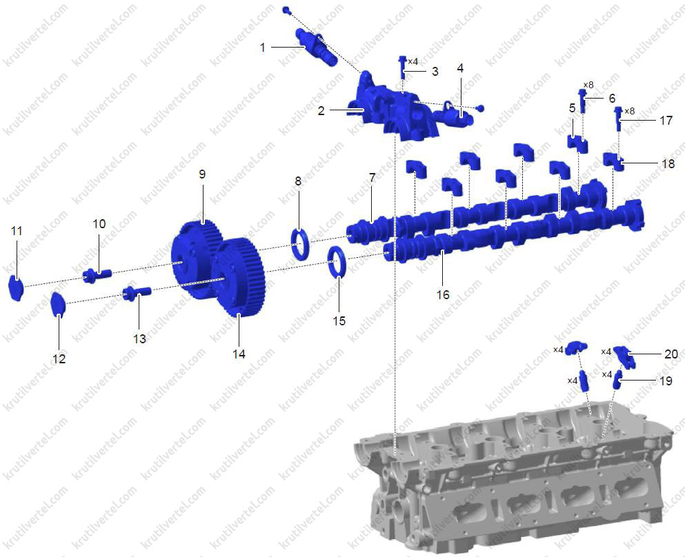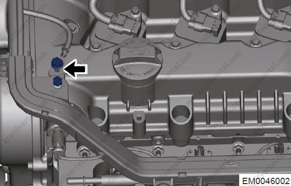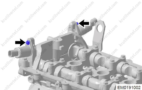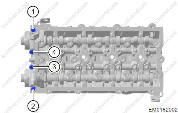 - Кріпильний болт кришки підшипника розподільчого валу випускних клапанів.