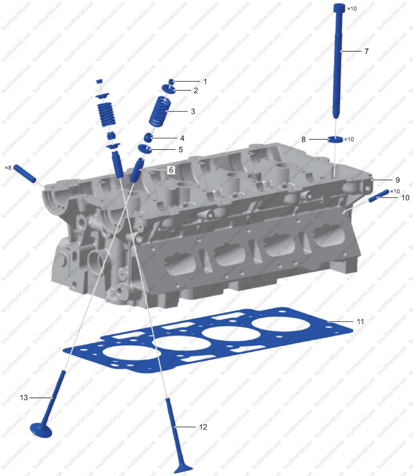 Головка блоку циліндрів та її компоненти Chery Tiggo 8 з 2018 року випуску (з урахуванням оновлення 2022 року)