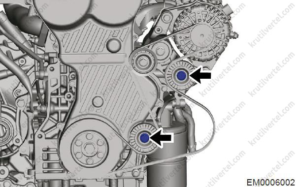 - Щоб уникнути травм при знятті/встановленні ременя приводу допоміжних агрегатів та його компонентів, обов'язково надягайте засоби індивідуального захисту.
