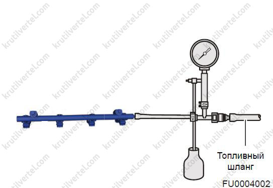 | Тиск у паливній рампі - кнопковий вимикач запалювання у положенні OFF | Дайте паливному насосу працювати протягом п'яти хвилин, а потім вимкніть. Перевірте зміну тиску в отворі насоса протягом 48 годин. Тиск не повинен опускатися нижче 1 кПа. Коли тиск становитиме 80% від номінального значення, вимкніть запалювання та відкрийте вихідний отвір насоса. Протягом однієї хвилини максимальний тиск не повинен опускатися більш ніж на 10%. |