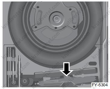 Домкрат та набір необхідних інструментів знаходяться під декоративною панеллю багажника.
