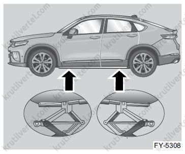 Використовуйте спеціальний домкрат, яким обладнано автомобіль. Не використовуйте інші несумісні домкрати. Автомобіль може зісковзнути з домкрата через неналежну якість останнього, що призведе до травм або смерті