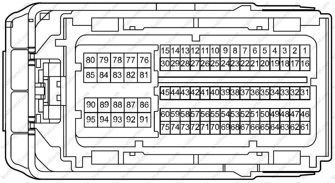 | 14 | Білий з фіолетовою смугою | GND | «Маса» датчика положення розподільчого валу випускних клапанів |