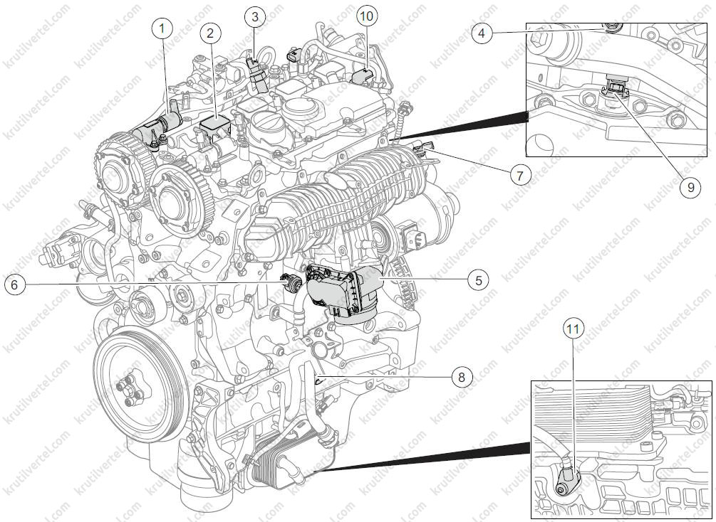 1. Датчик положення колінчастого валу: