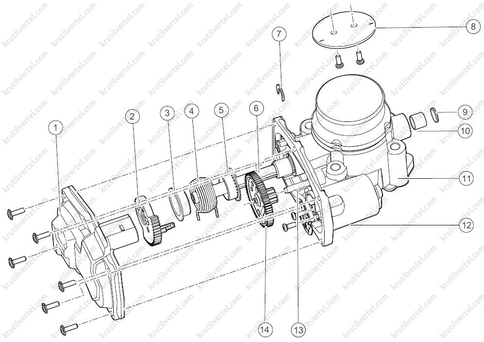 Подетальний вигляд вузла дросельної заслінки з електроприводом
