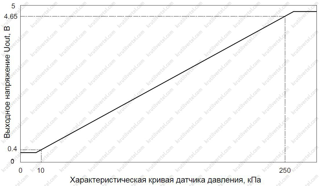 Залежність напруги сигналу датчика тиску на впуску від тиску:
