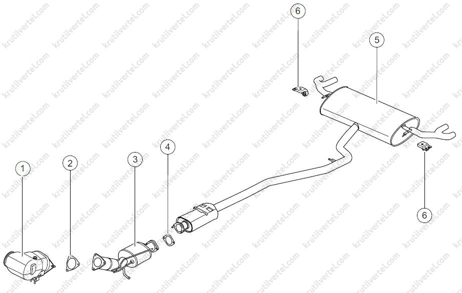 | 3. Замініть турбокомпресор, передню трубу та задній глушник. |