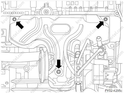 4. Викрутіть три болти, що з'єднують теплозахисний екран з турбокомпресором, та зніміть теплозахисний екран.