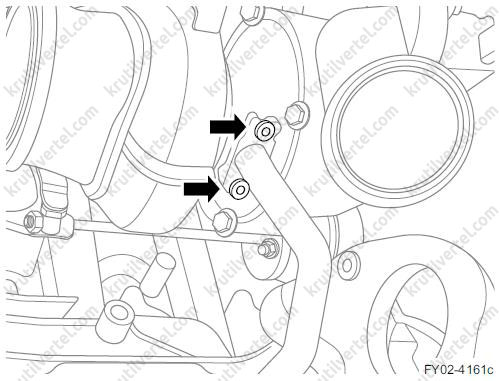 19. Викрутіть два болта, що з'єднують масляну трубку з турбокомпресором, і від'єднайте масляну трубку.