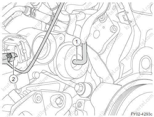 16. Від'єднайте роз'єм (2) джгута дротів перепускного клапана турбокомпресора.