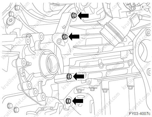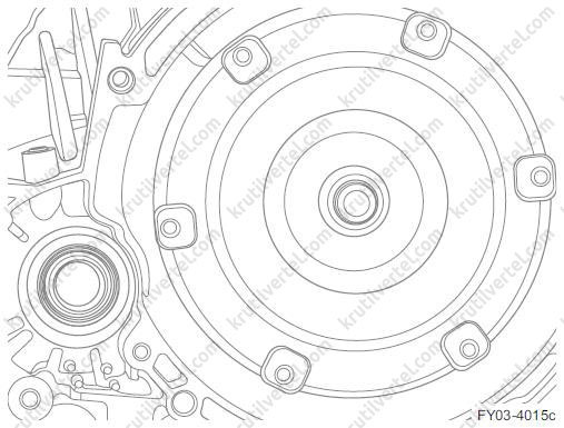 5. Повертаючи провідний диск, послідовно відверніть шість кріпильних гайок, що з'єднують провідний диск із гідротрансформатором.
