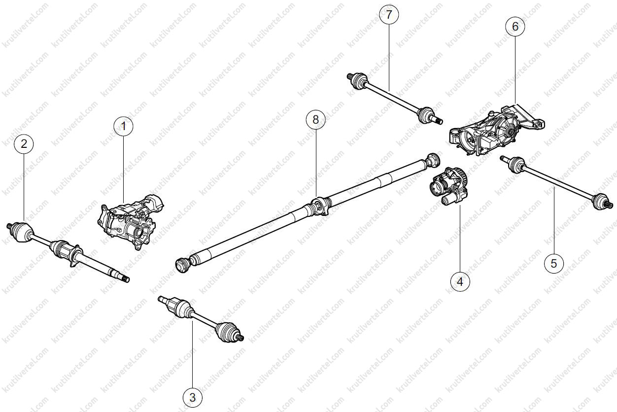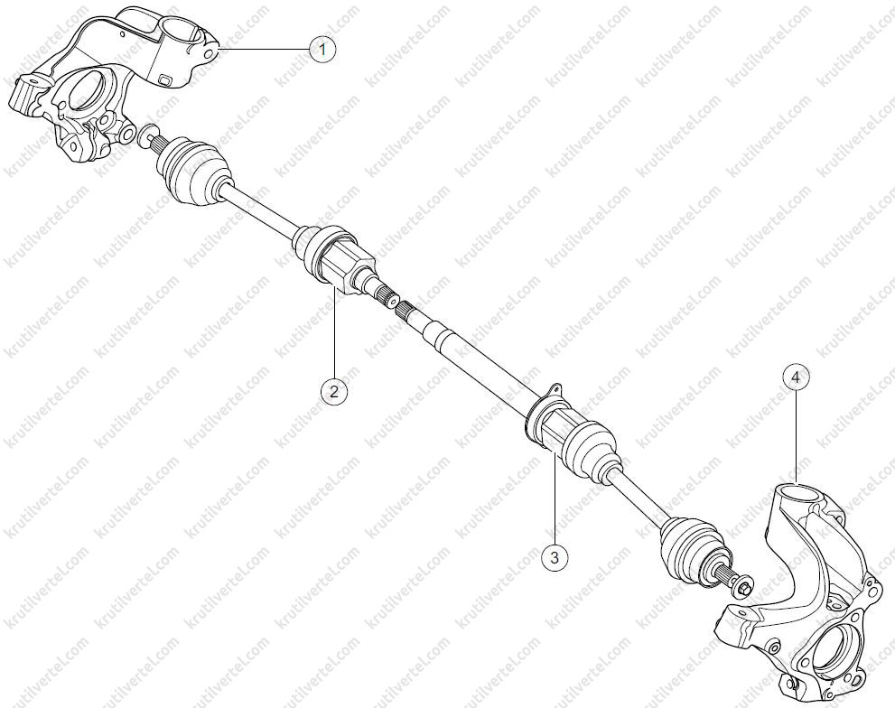 - Правий задній приводний вал із шарніром рівних кутових швидкостей.