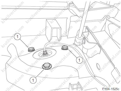 9. Викрутіть три болти (1) у верхній частині переднього амортизатора.