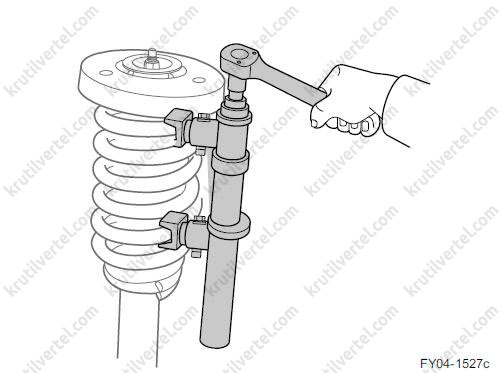 При затягуванні гайки утримуйте шток амортизатора гайковим ключем, щоб не допустити його прокручування.