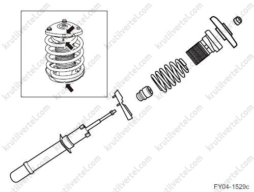 - При установці необхідно бути обережними, щоб не допустити пошкодження покриття при переміщенні пружини передньої підвіски. Пошкодження покриття може спричинити передчасне руйнування кузова.